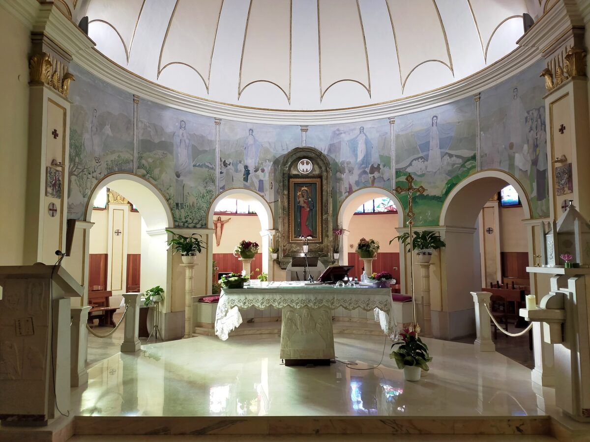 Il Santuario di Maria Santissima di Pietraquaria, adagiato a circa 1000 metri d’altitudine, domina la piana del Fucino offrendo suggestivi panorami e un profondo senso di spiritualità. La chiesa, dal raffinato stile neoclassico, custodisce preziosi mosaici dorati ispirati alla tradizione locale.